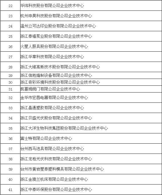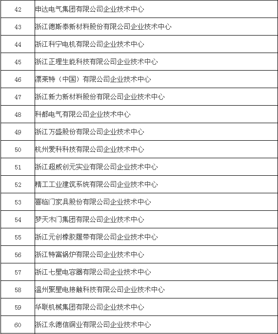 。附件:浙江省2017年(第二十四批)擬認定為省級企業(yè)技術中心名單