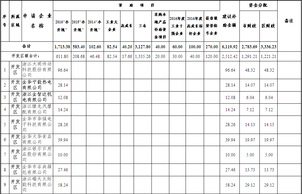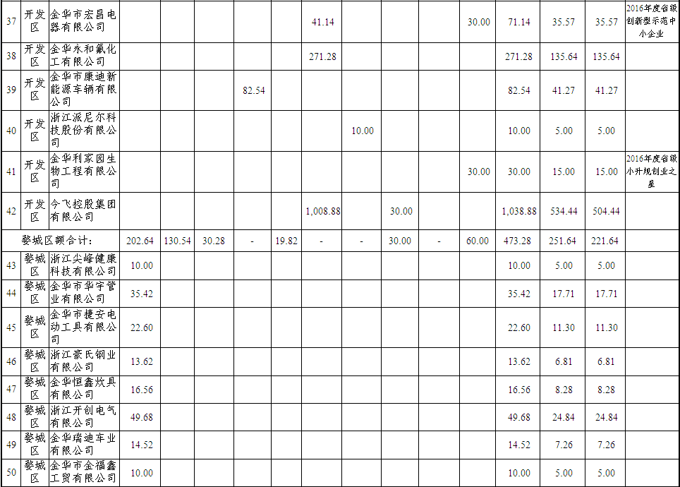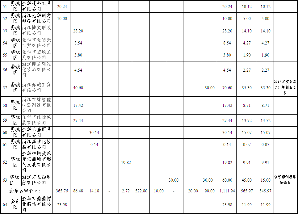 、各區(qū)初審和金華君安會計事務(wù)所審計,現(xiàn)將2016年度市區(qū)小升規(guī)企業(yè)