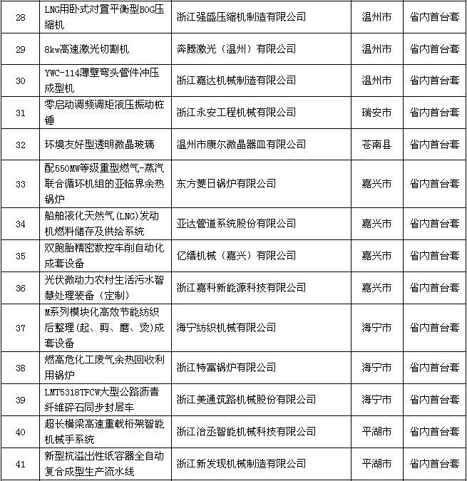 附件:2018年度浙江省裝備制造業(yè)重點(diǎn)領(lǐng)域首臺(tái)(套)產(chǎn)品認(rèn)定結(jié)果公示名單
