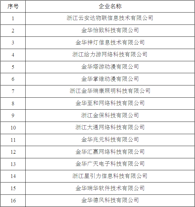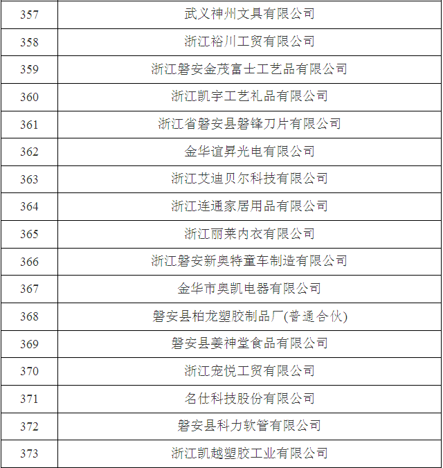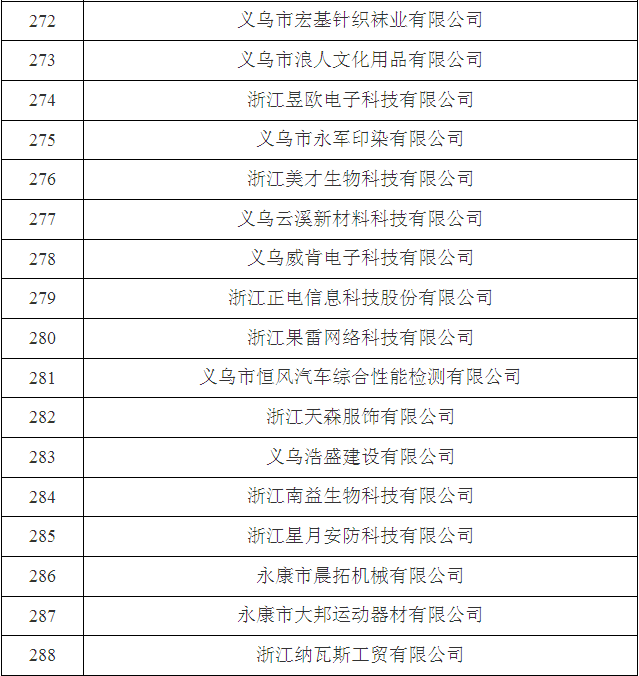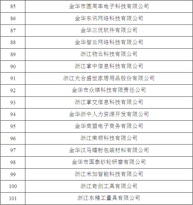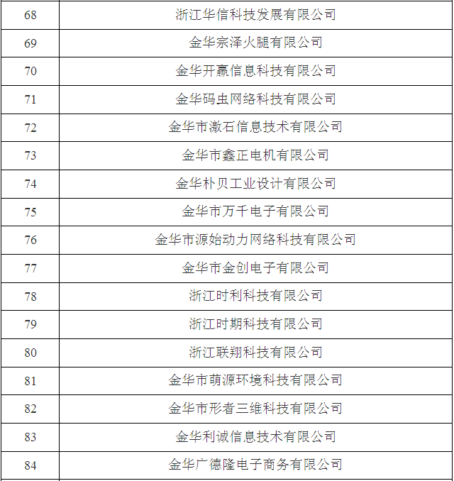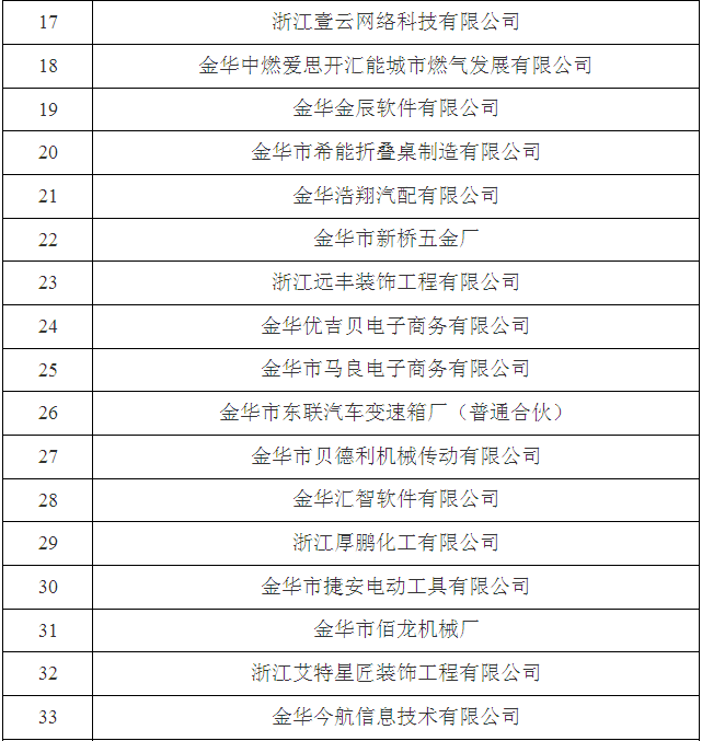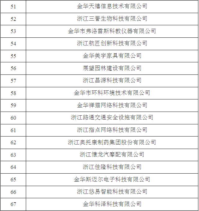 2017年金華市第三批省科技型中小企業(yè)名單