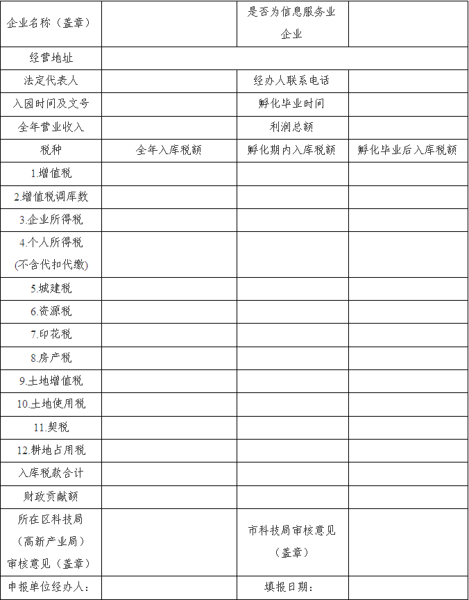 2017年度市區(qū)科技孵化政策獎勵申請表