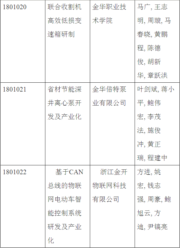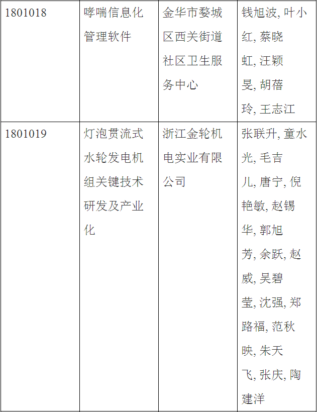 第三十三批金華市科技成果登記名單