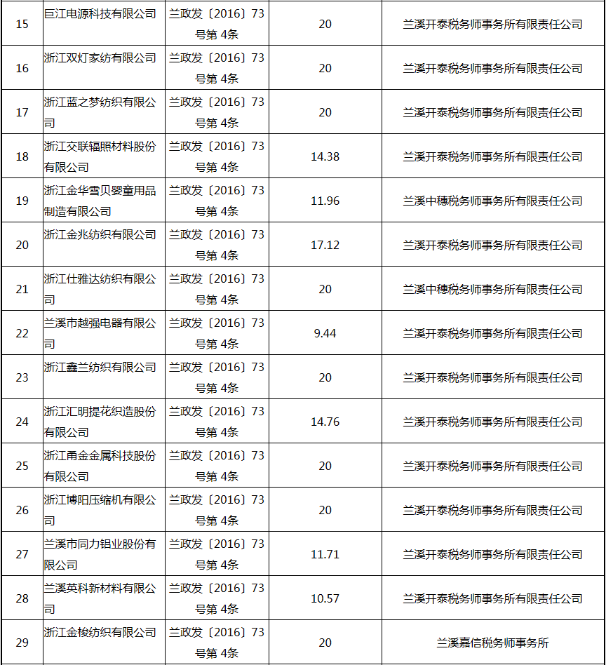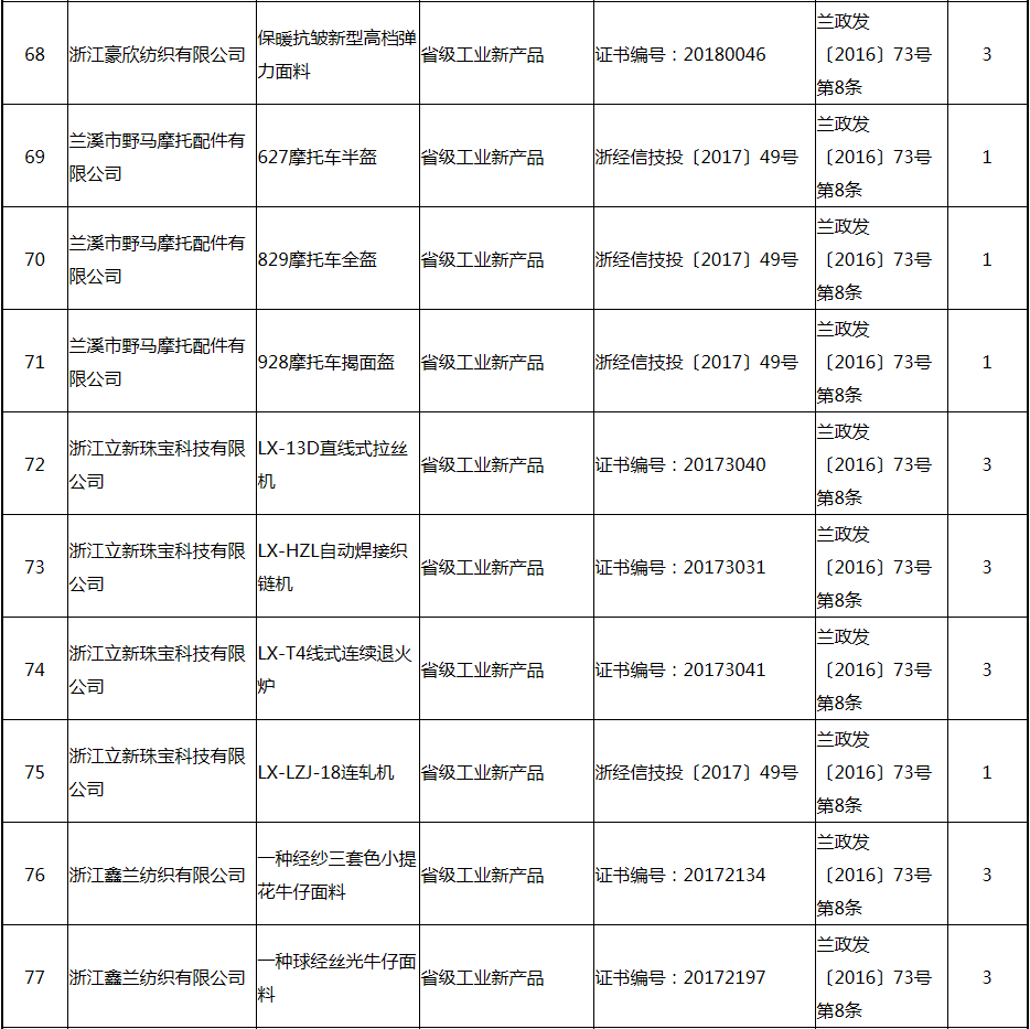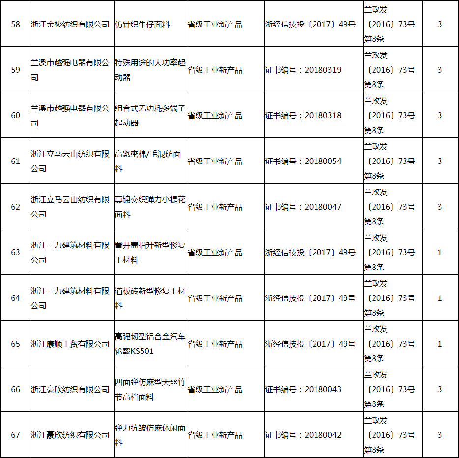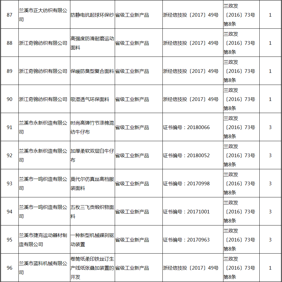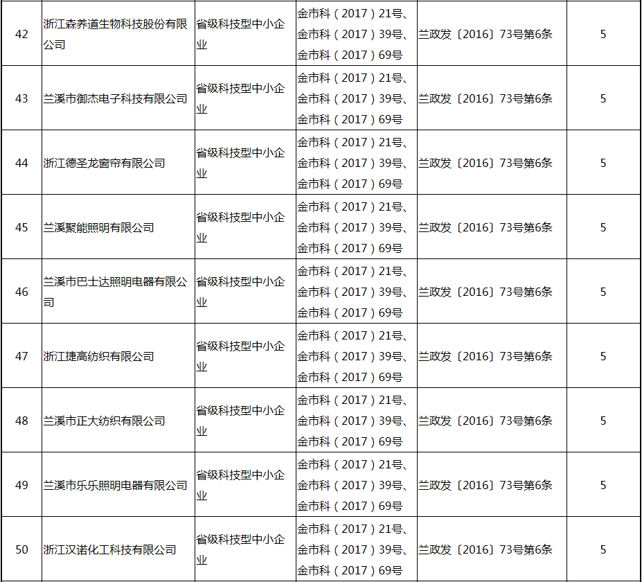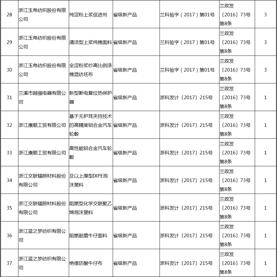 根據(jù)《關(guān)于實(shí)施創(chuàng)新驅(qū)動(dòng)戰(zhàn)略大力推進(jìn)大眾創(chuàng)業(yè)萬(wàn)眾創(chuàng)新的若干意見(jiàn)》(蘭政發(fā)〔2016〕73號(hào))和《蘭溪市科技創(chuàng)新券實(shí)施管理辦法》(蘭科局〔2016〕17號(hào))等文件精神 聯(lián)系電話:88840742 附件:2017年度科技創(chuàng)新專項(xiàng)資金獎(jiǎng)勵(lì)及補(bǔ)助方案 附件 2017年度科技創(chuàng)新專項(xiàng)資金獎(jiǎng)勵(lì)及補(bǔ)助方案 一、科技創(chuàng)新平臺(tái)建設(shè)獎(jiǎng)勵(lì)(325萬(wàn)元) 二、高新技術(shù)產(chǎn)業(yè)獎(jiǎng)勵(lì)(525萬(wàn)元) 三、科技計(jì)劃項(xiàng)目實(shí)施獎(jiǎng)勵(lì)(213萬(wàn)元) 四、企業(yè)研究開(kāi)發(fā)經(jīng)費(fèi)獎(jiǎng)勵(lì)(809.48萬(wàn)元) 五、專利獎(jiǎng)勵(lì)及補(bǔ)助(458.43) (一) 金華市專利示范企業(yè) (二) 發(fā)明專利產(chǎn)業(yè)化獎(jiǎng)勵(lì) (三) 浙江省專利金獎(jiǎng) (四) 省級(jí)以上(含省級(jí))專利示范企業(yè)發(fā)明專利年費(fèi)補(bǔ)助 (五) 知識(shí)產(chǎn)權(quán)貫標(biāo)認(rèn)證獎(jiǎng)勵(lì) (六) 專利申請(qǐng)資助 六、農(nóng)業(yè)和社發(fā)類(醫(yī)衛(wèi))科技創(chuàng)新專項(xiàng)資金獎(jiǎng)勵(lì)及補(bǔ)助(48萬(wàn)元) 七、2017年創(chuàng)新券兌現(xiàn)申請(qǐng)匯總表(54.513萬(wàn)元) 八、科學(xué)技術(shù)獎(jiǎng)(5萬(wàn)元) 九、老科技工作者協(xié)會(huì)經(jīng)費(fèi)(10萬(wàn)元) 十、2017年漏報(bào)項(xiàng)目(8.1萬(wàn)元) (一) 高新技術(shù)產(chǎn)業(yè)獎(jiǎng)勵(lì) (二) 2016創(chuàng)新券兌現(xiàn)申請(qǐng) (三) 2016年度發(fā)明專利獎(jiǎng)勵(lì)