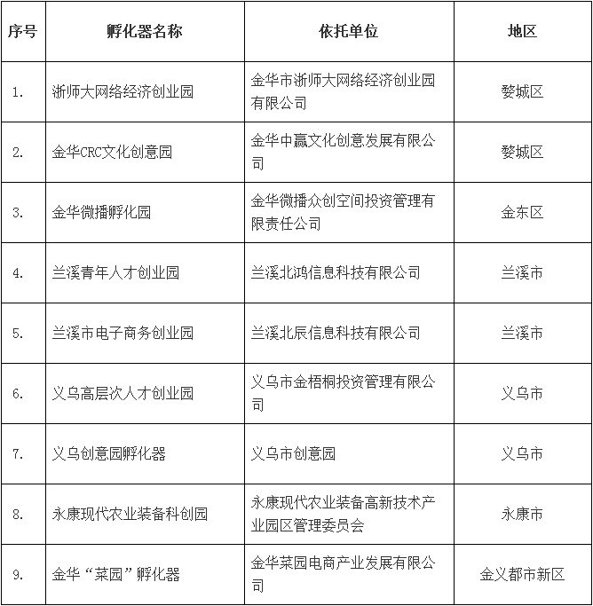 附件:2018年第一批金華市科技孵化器名單