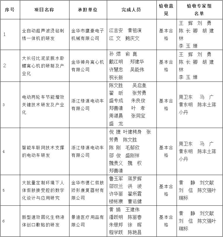 金華市級(jí)科技計(jì)劃項(xiàng)目驗(yàn)收結(jié)果公示清單