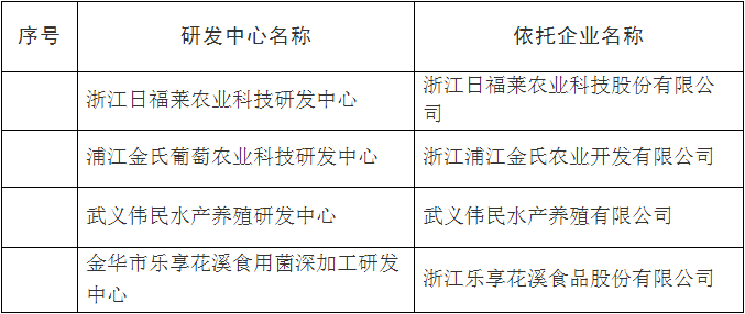 “浙江日福萊農(nóng)業(yè)科技股份有限公司”等4家企業(yè)組建的研發(fā)中心為金華市農(nóng)業(yè)科技研究開(kāi)發(fā)中心,現(xiàn)予公布。