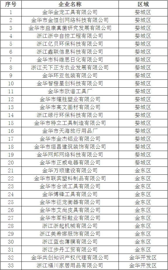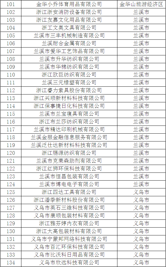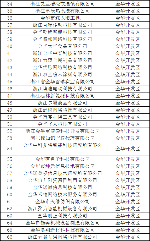 2018年金華市第三批浙江省科技型中小企業(yè)擬認定名單