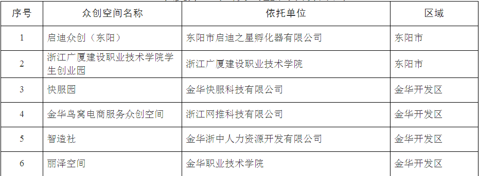 6家單位備案為金華市眾創(chuàng)空間。